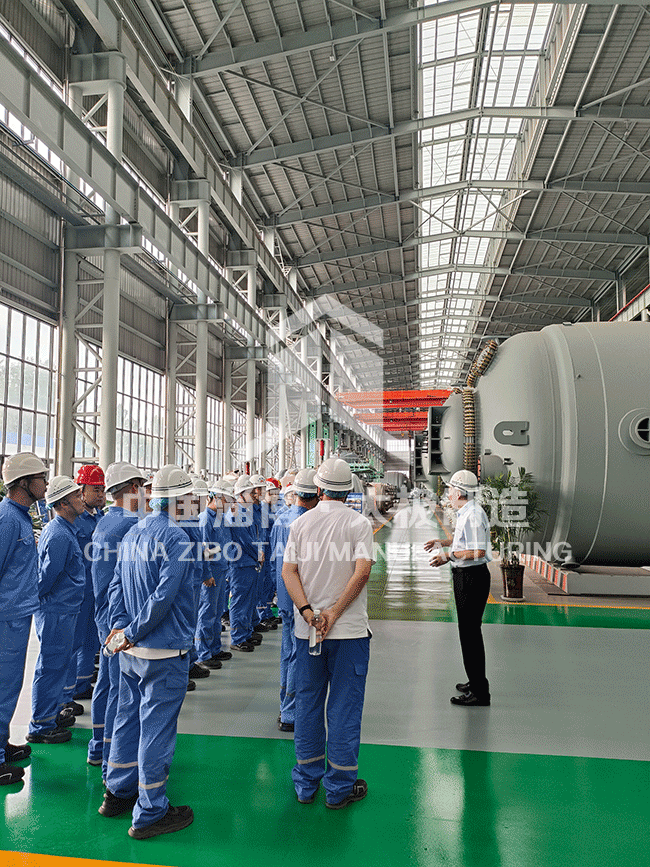 2025 年 8 月 3 日,太極公司廠區(qū)迎來了一批特殊的客人 —— 合作客戶組織旗下 30 余位車間負(fù)責(zé)人組成考察團(tuán),專程蒞臨我司開展實(shí)地考察學(xué)習(xí)活動(dòng)。此次考察不僅體現(xiàn)了客戶對(duì)雙方合作的高度重視,更彰顯了太極公司在搪玻璃設(shè)備領(lǐng)域的行業(yè)影響力。